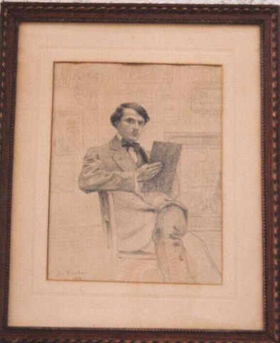 Dessin au fusain signé J. Brabo.