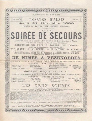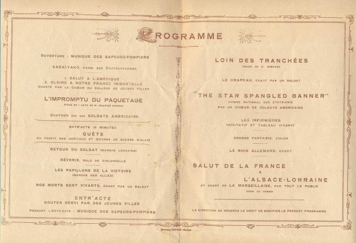 - Grande représentation au profit des oeuvres de guerre de la ville d'Alais : 24/11/1918